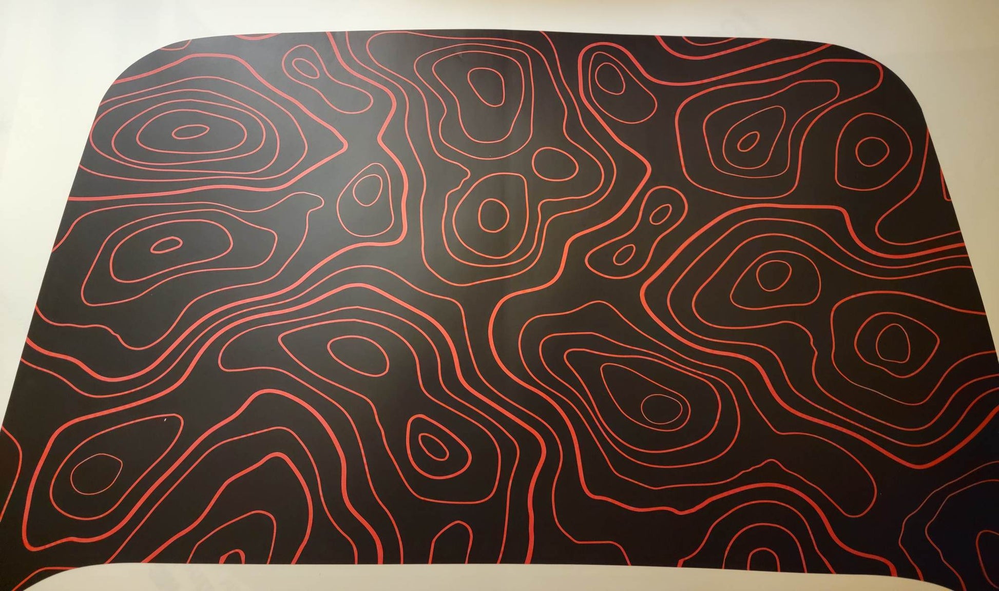 Here we have our famous Anti-Glare Hood Scoop Vinyl overlay that has been taken to the next level by collaborating with few shops. These decals are matte black with  topographic lines in light grey or white   The topographic lines are printed on the vinyl and then it is UV matte laminated to protect the print. These decals are printed and cut on 3m Controltac vinyl which is very high quality vinyl.