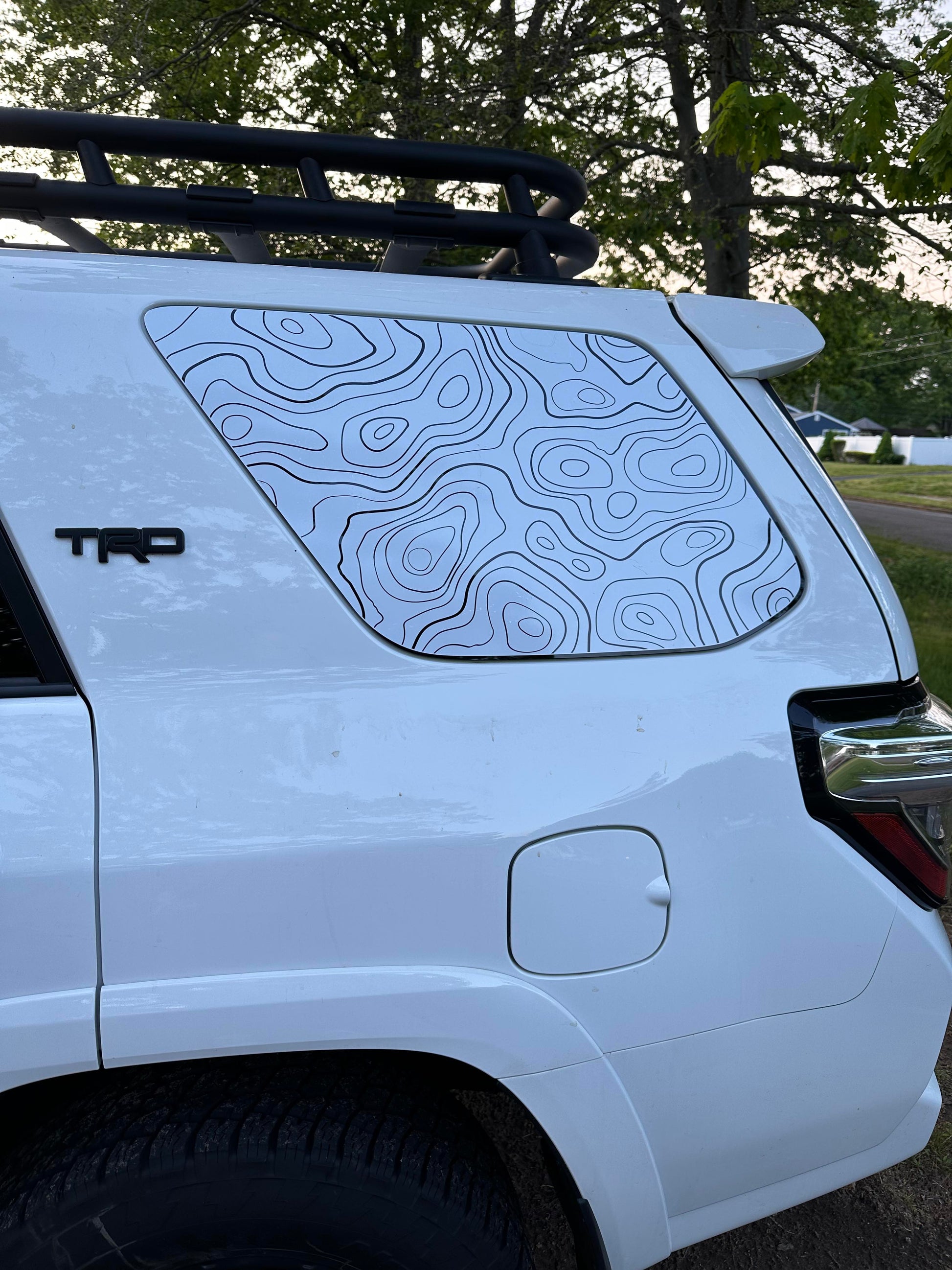 We have created our first rear window Topographic Cut out Decal for your 5th Generation 2010-2023 4Runner . This topographic design matches our non-lettered topographic hood scoop decal .